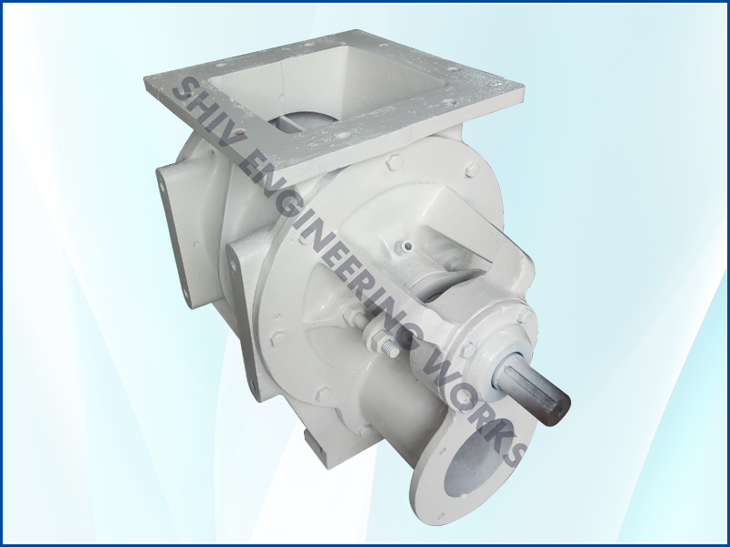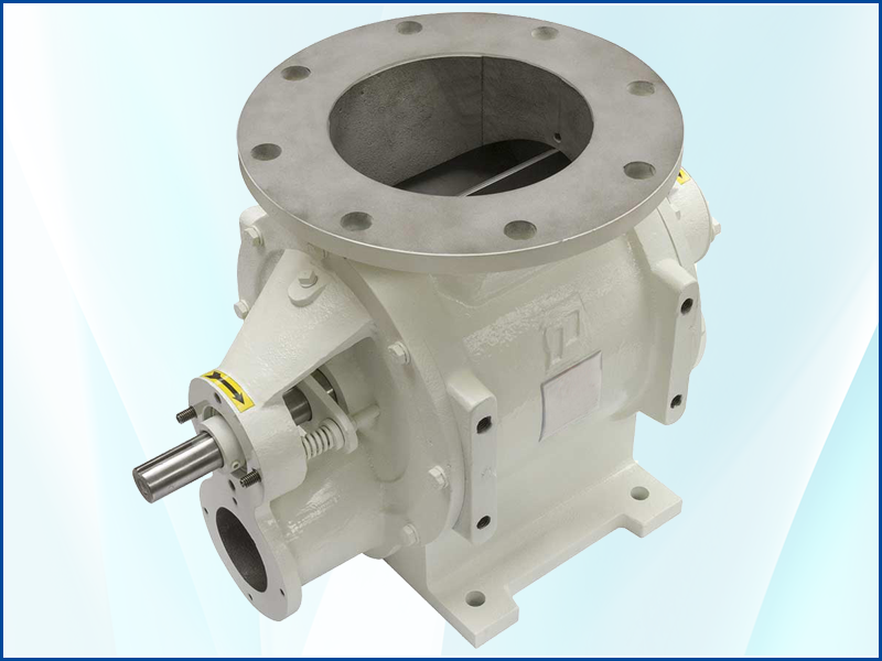 The Blow Thru Rotary Airlock Valve is used in pneumatic conveying applications only, both positive pressure and vacuum. Instead of a typical outlet, blow thru rotary airlocks include two ports on the sides of the valve near the bottom. The conveying line pipe connects directly to the valve, with the air stream flowing through the rotor pockets. This design is very efficient, and works well on materials that tend to hang up in the rotor pockets. However, this valve is not recommended on abrasive products as the vanes will quickly wear. This unit is also very helpful in applications that have height limitations. Convey line adapters are provided to suit the application. Sizes: 6, 8, 10, 12 and 16 inch.